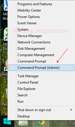 1. Klik kanan pada Start, lalu pilih Command Prompt (Admin).